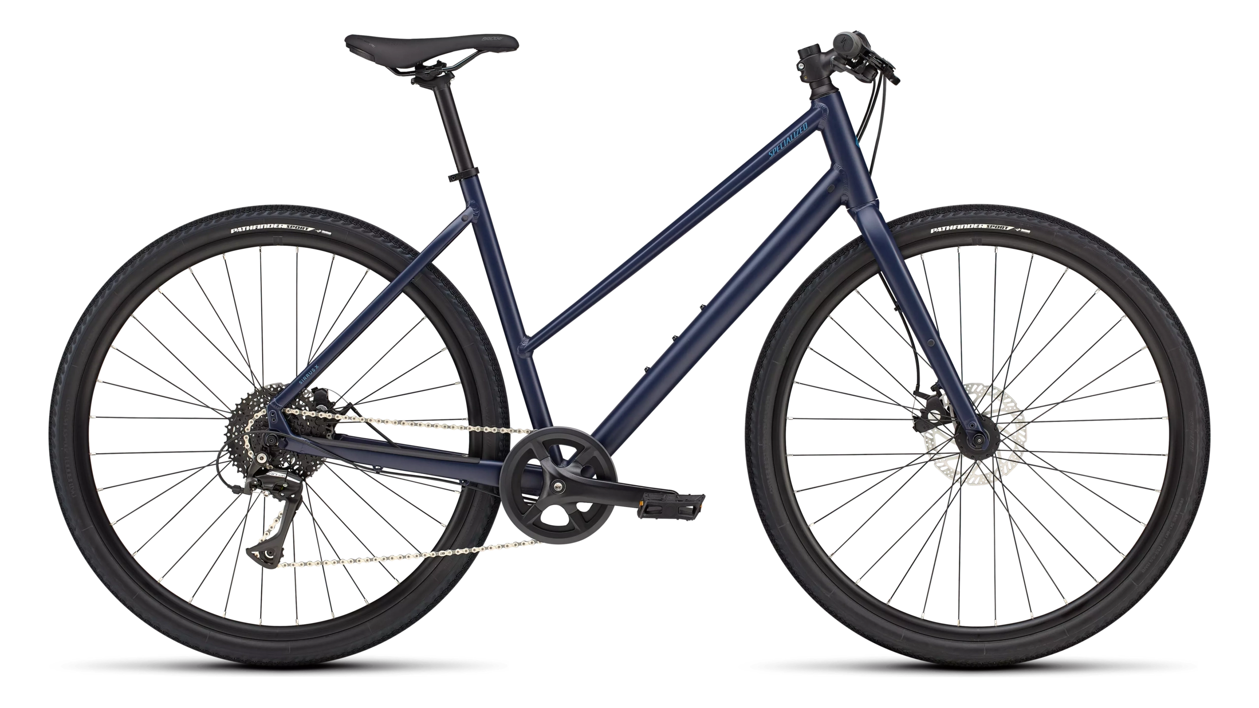 Specialized A1 Premium Aluminum, Fitness Geometry, butted tubing, internal cable routing, flat-mount disc, quick-release, Plug + Play rack/fender mounts